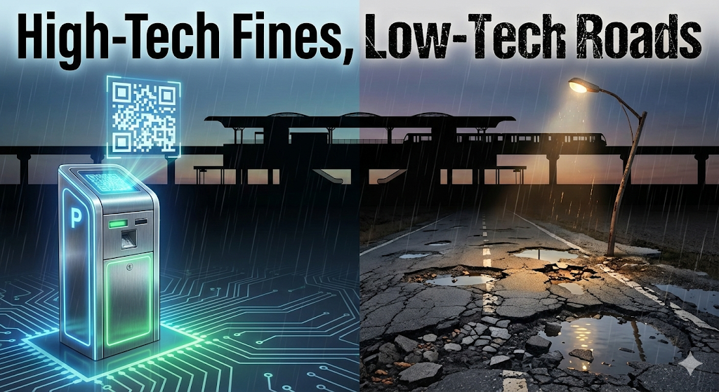 돈을 걷어가는 시스템(주차 단속, 통신 요금 차단, 세금 징수)은 2050년의 미래 기술을 쓰는데, 정작 시민을 위한 인프라(도로, 가로등, 대중교통)는 1990년도에 멈춰 있는 것 같기 때문입니다.