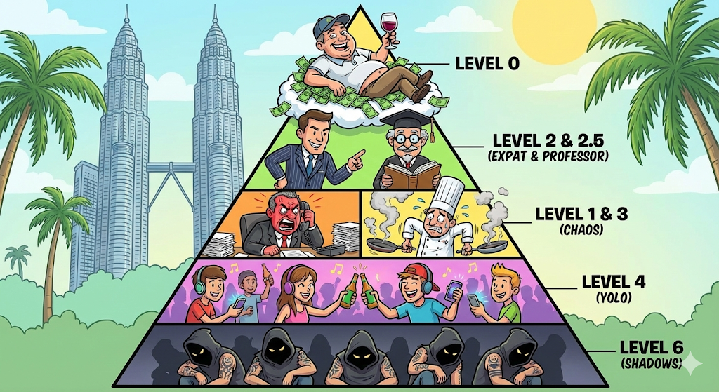 - 특징: "나 말레이시아에서 교수야"라고 말하지만, 실상은 박봉에 시달린다. 비자 갱신 때마다 학교 행정실 눈치를 봐야 한다. 투잡(과외, 번역)을 뛰어야 할 수도 있다. 겉은 교수님인데 속은 비정규직의 설움이 가득하다.