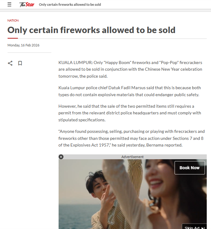 말레이시아의 명절 하면 가장 먼저 떠오르는 것, 바로 밤하늘을 찢는 듯한 폭죽 소리입니다. 하지만 2026년 2월 16일, 말레이시아 경찰(PDRM)은 이번 중국인 설날(CNY)을 기해 단 2가지 종류의 폭죽 외에는 엄격히 금지하며, 그마저도 경찰의 사전 허가가 필요하다는 폭탄선언을 했습니다.